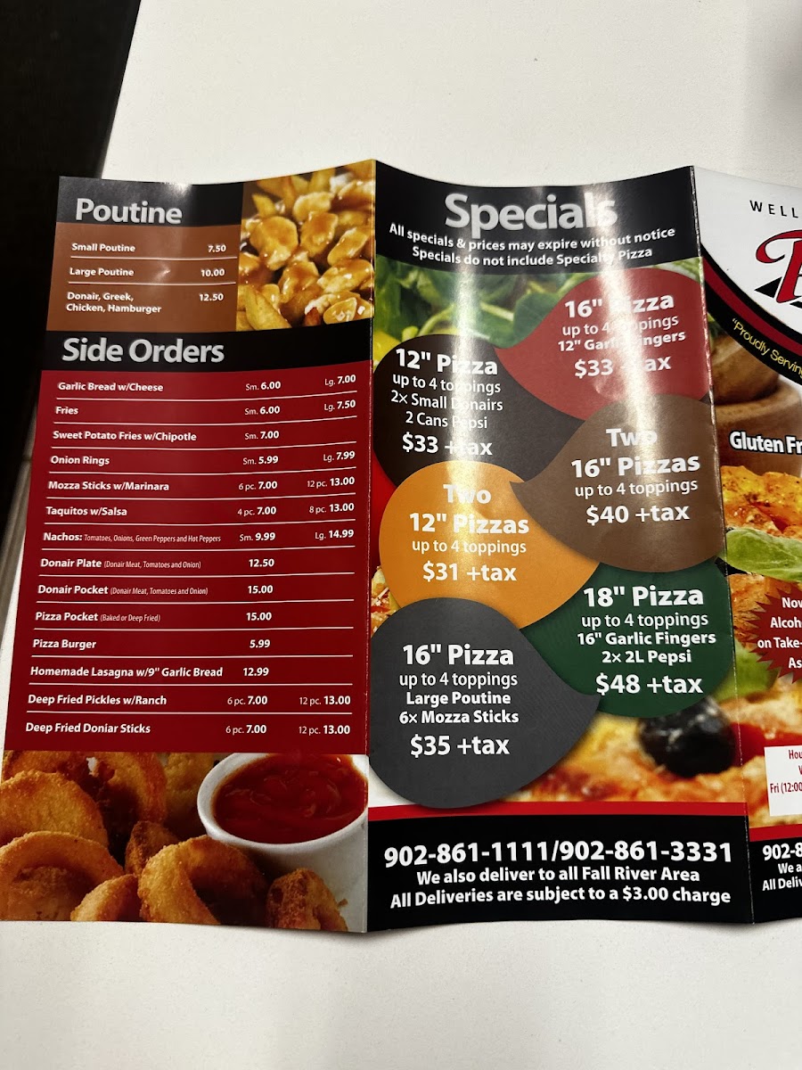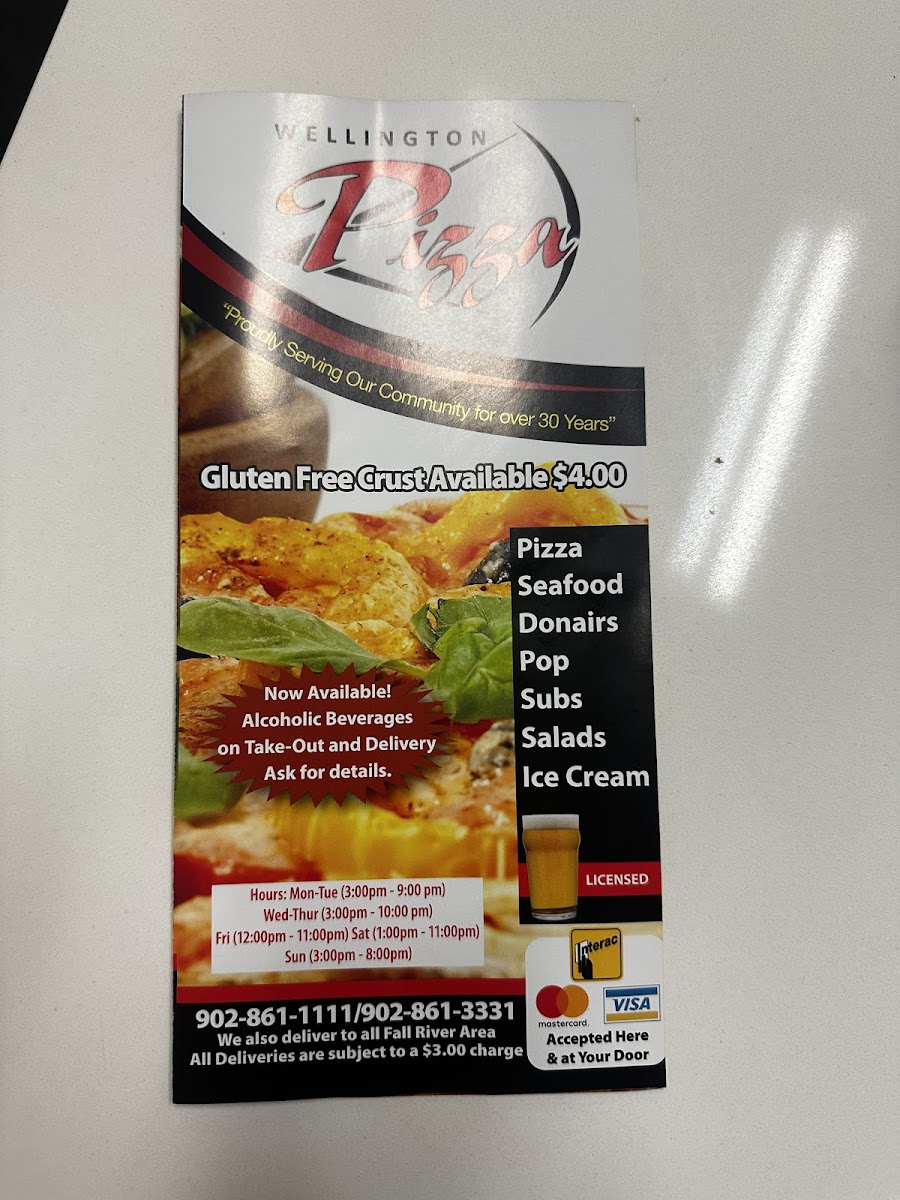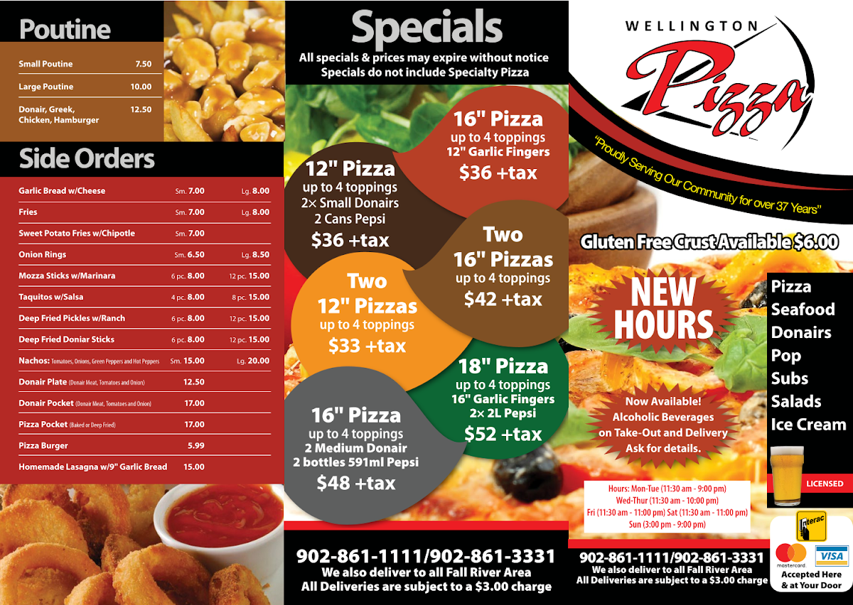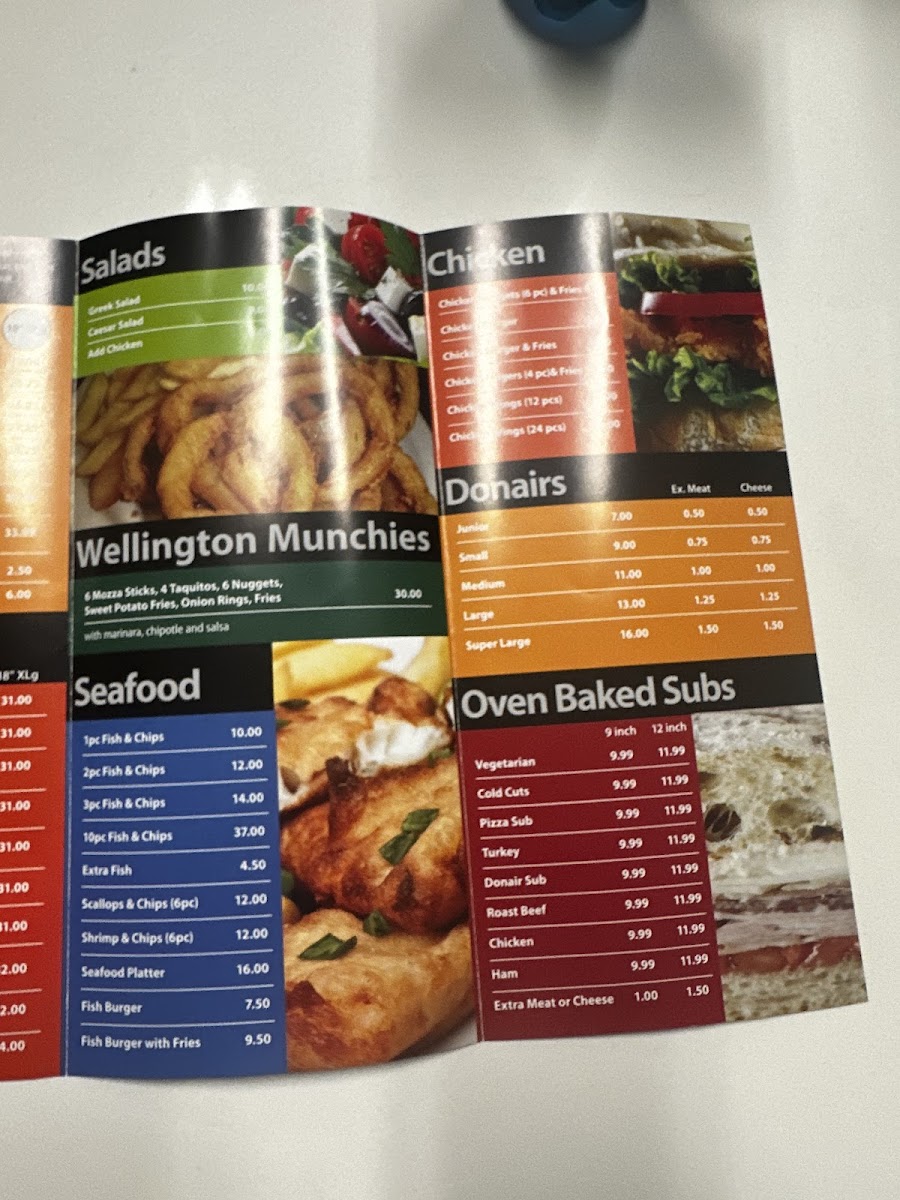 Wellington Pizza & Seafood Menu